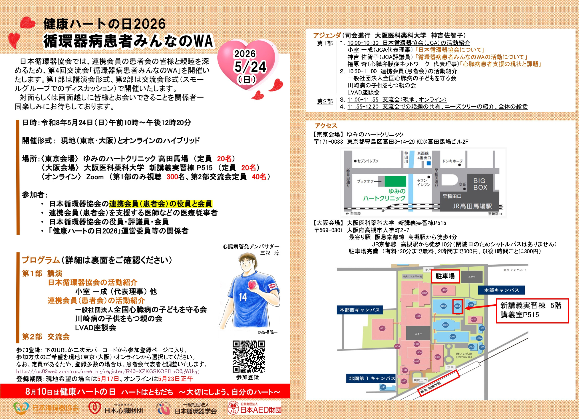 健康ハートの日2026「循環器病患者みんなのWA」講演・交流会イベント開催のお知らせ(日本循環器協会)